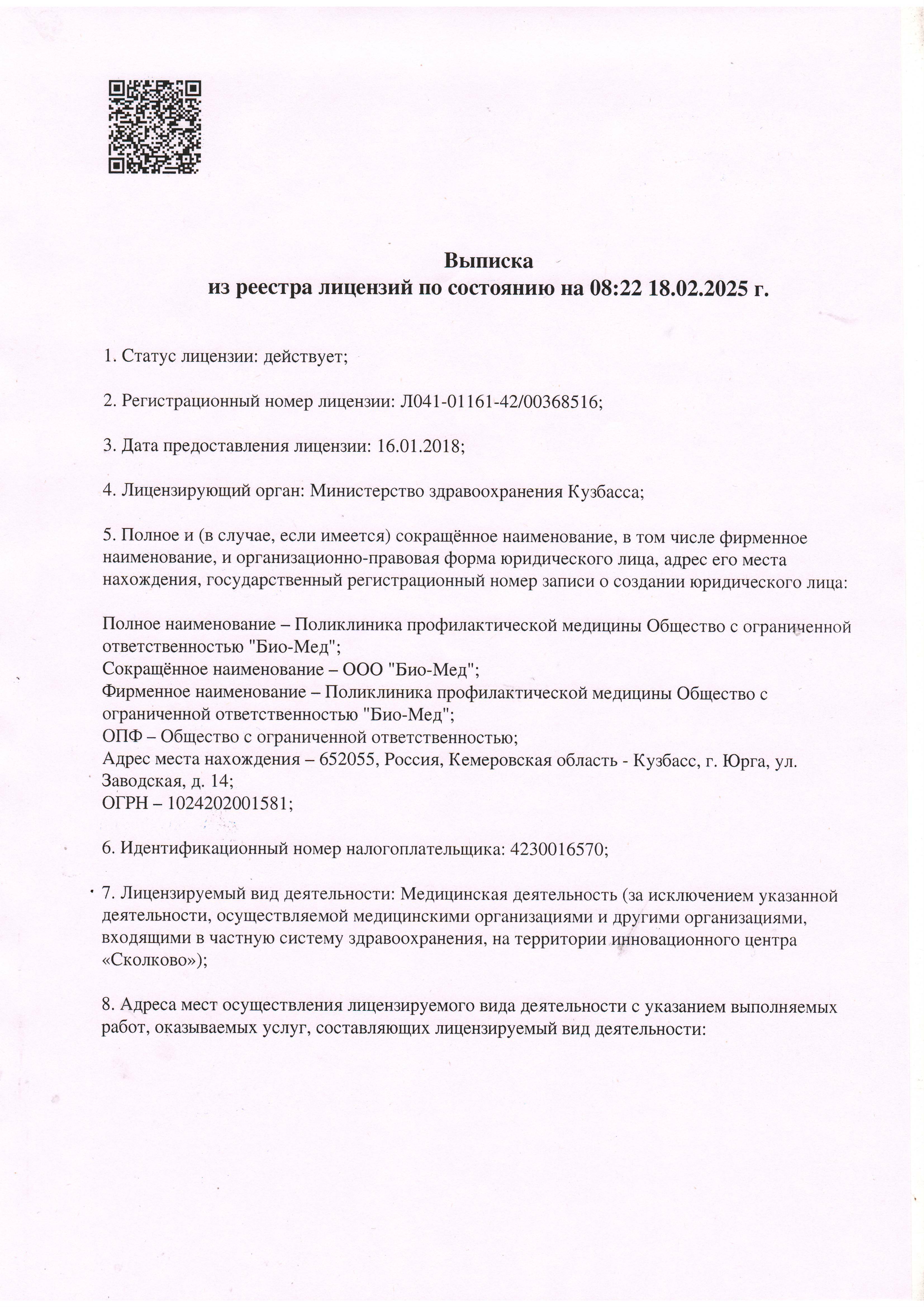 Контактный телефон, e-mail: 8(38451)6-04-00; biomed42@mail.ru